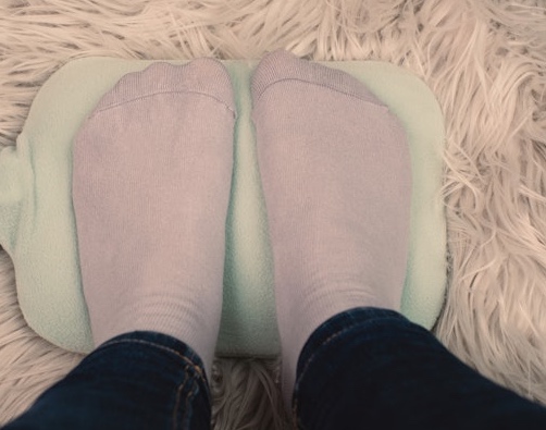 薄緑色のミニスカに同色のパンツ、黒いハイソックスを穿いてちょっと膝曲げた姿の逆さ撮り